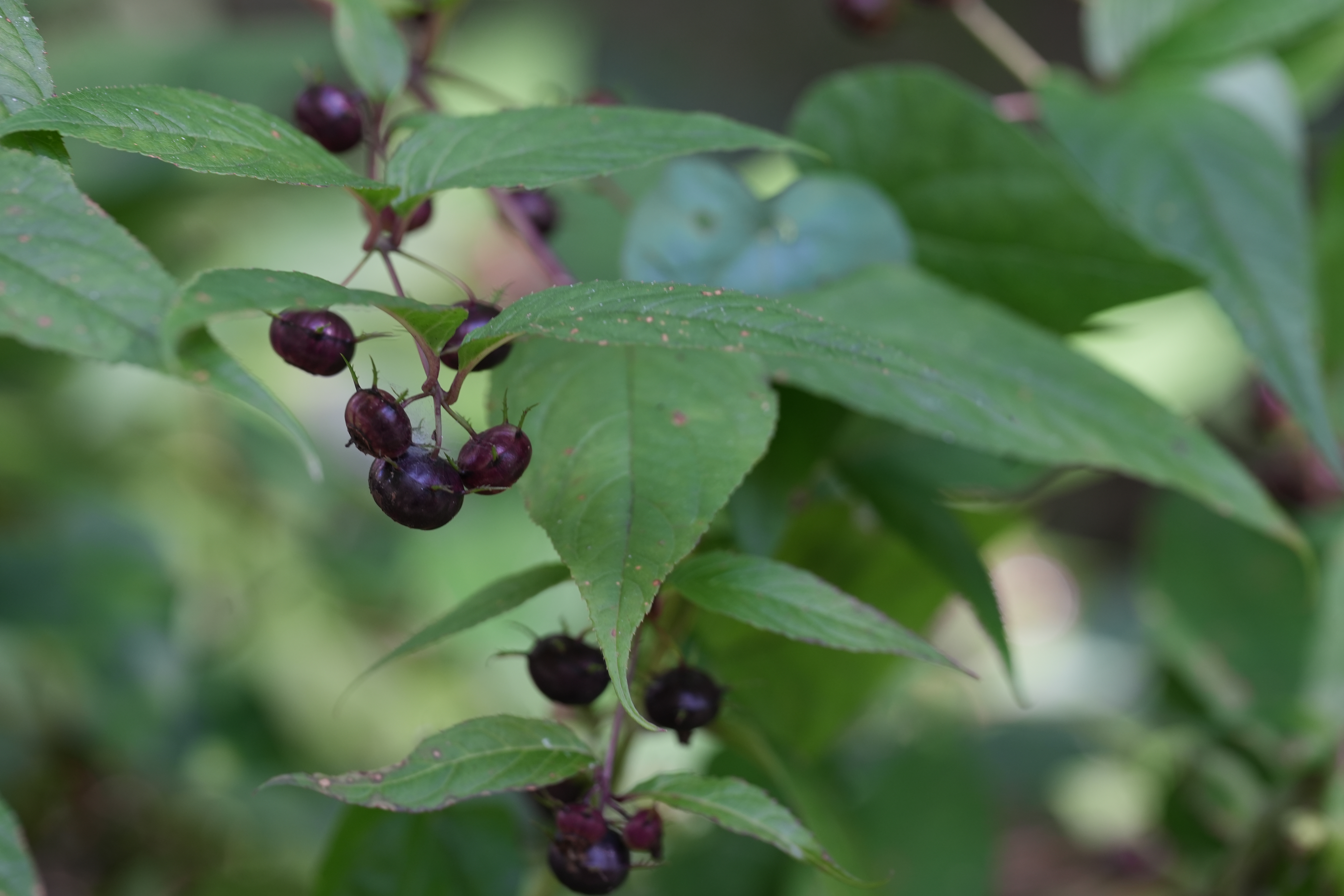 仔细观察轮钟草的果,你会发现一个极为有趣的细节。成熟的紫黑色浆果顶端,并非光滑圆润,而是辐射状地生长出数条棱状突起或细长的“齿轮”。这些“齿轮”在果中部膨大处均匀地散开,酷似古代车轮的辐条,又像是一个微缩的星芒图案,充满了几何之美。这种结构,不仅是它区别于其他浆果的身份证,也极有可能在种子传播中扮演着特殊的角色。