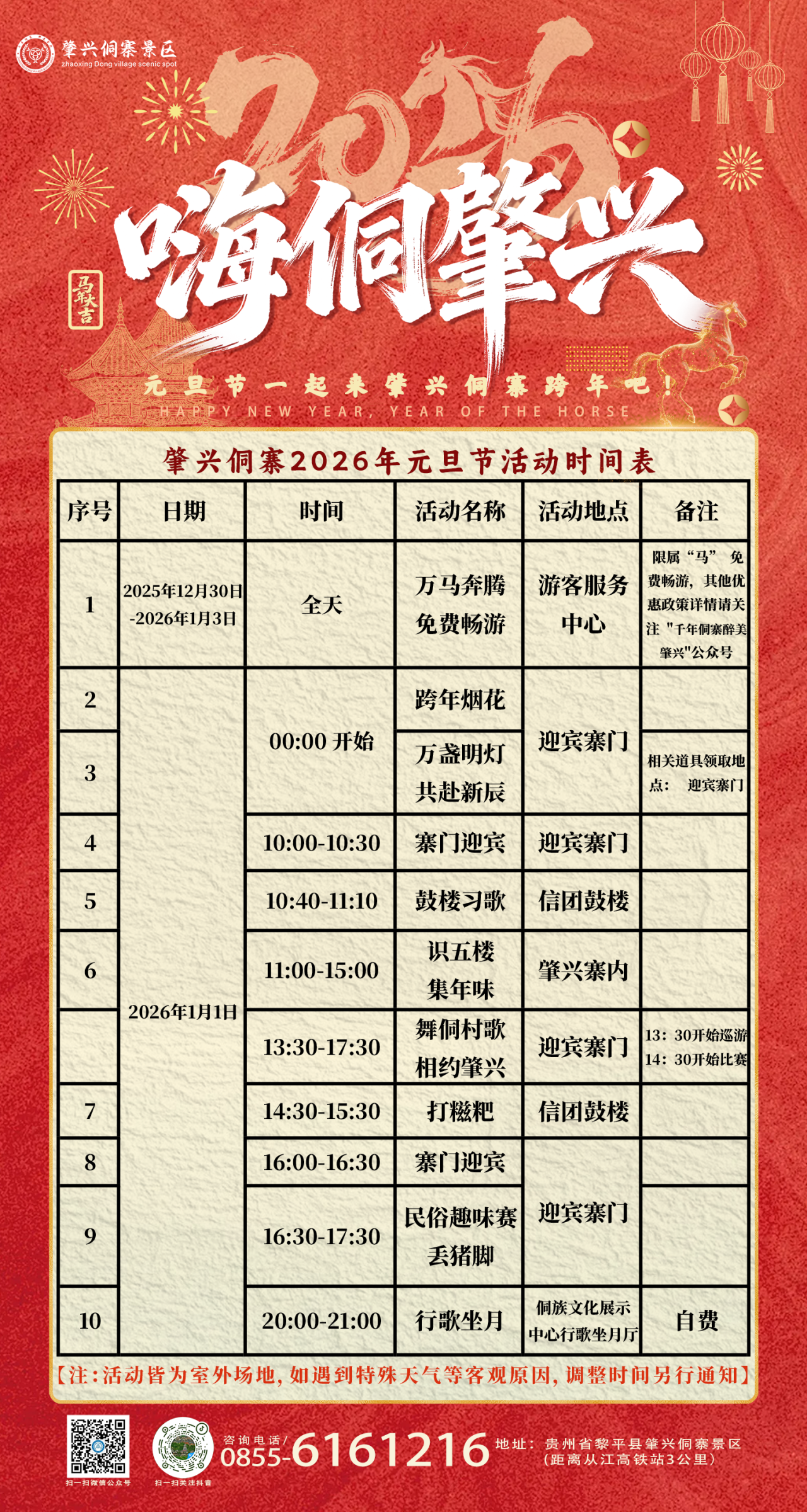 活动预告丨元旦启新,以歌为伴,踏舞迎新年,2026元旦节一起来肇兴侗寨跨年吧!