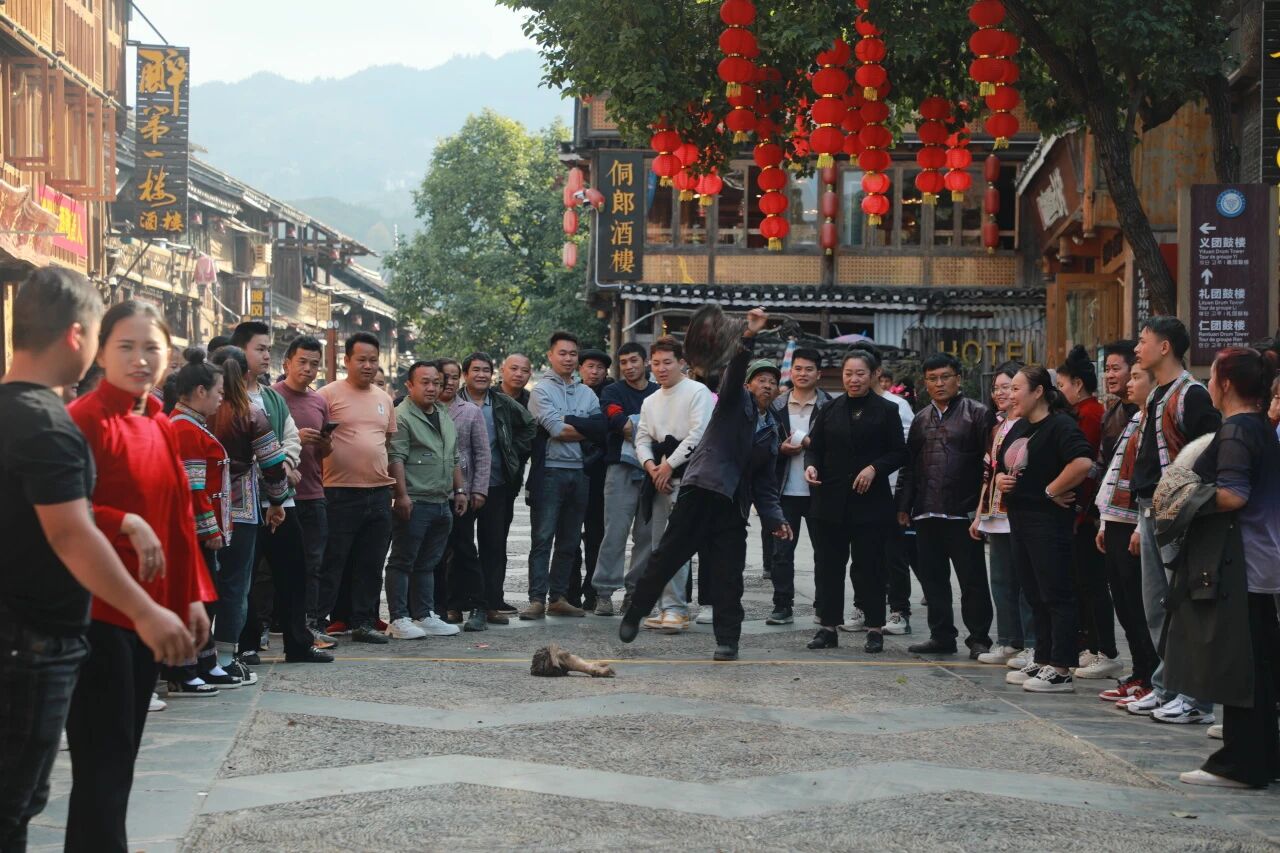 四方侗寨的歌者舞队汇聚一堂,迎来 “舞侗村歌·相约肇兴”总决赛。歌声如潮,舞步翩跹,各队伍以歌竞艺、以舞传情,在火光与喝彩中竞逐桂冠,共展侗乡风情之绚烂。