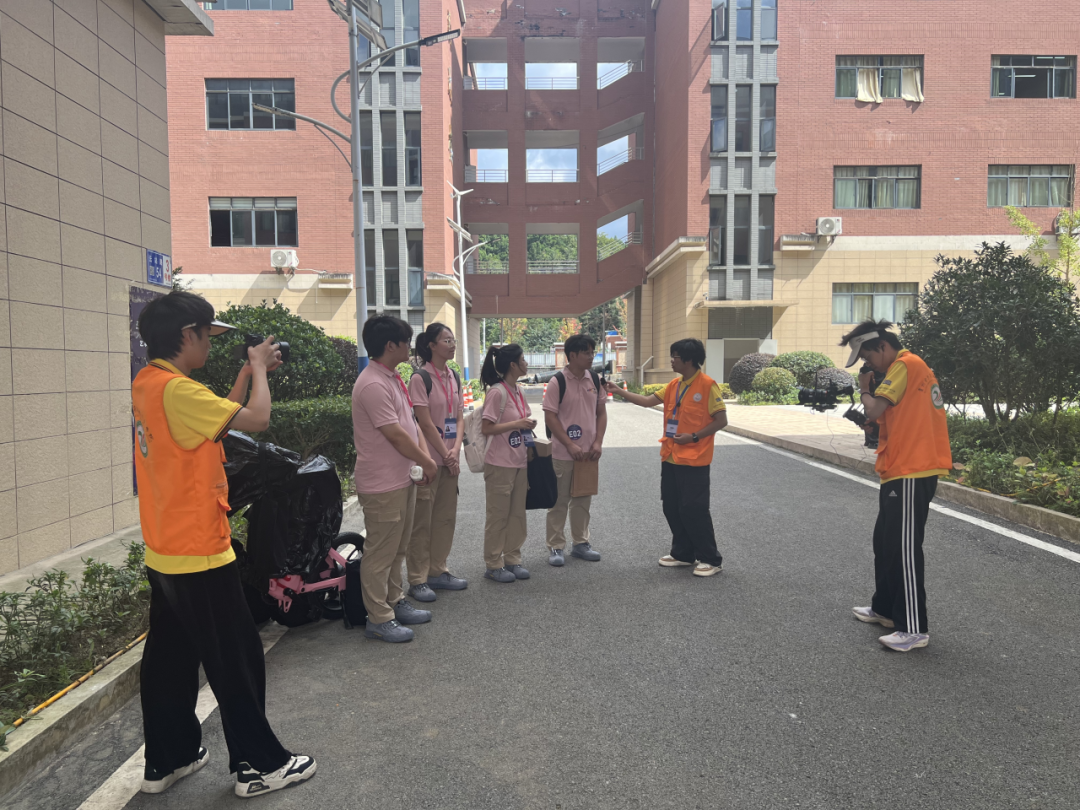 后勤保障组工作人员开展校园安全巡查,维护赛事期间校园秩序