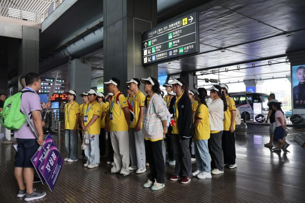 参赛队接待组与志愿者在机场接机,迎接参赛队伍