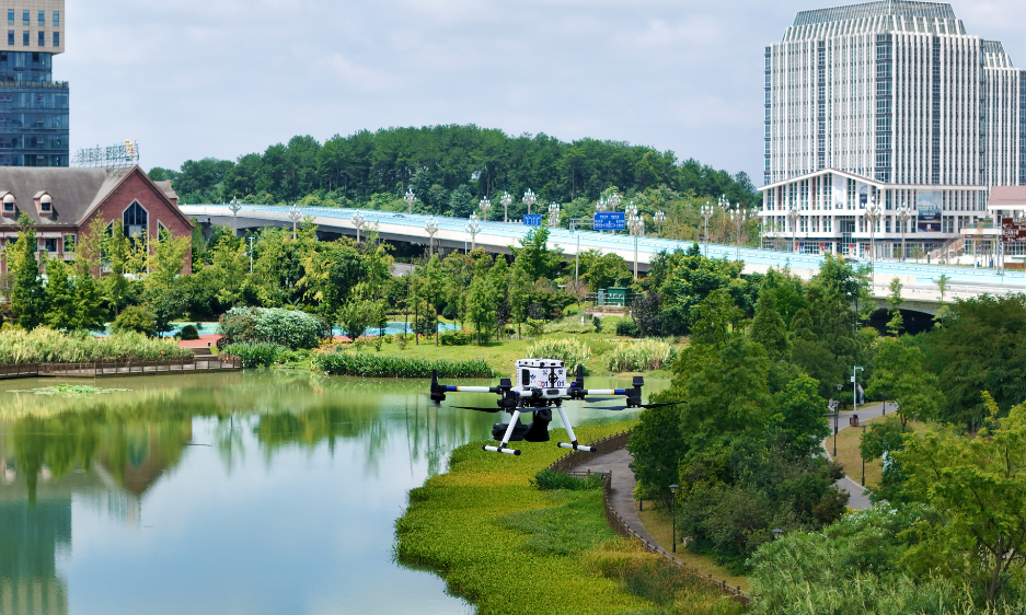 警用无人机在辖区重点水域执行巡逻任务