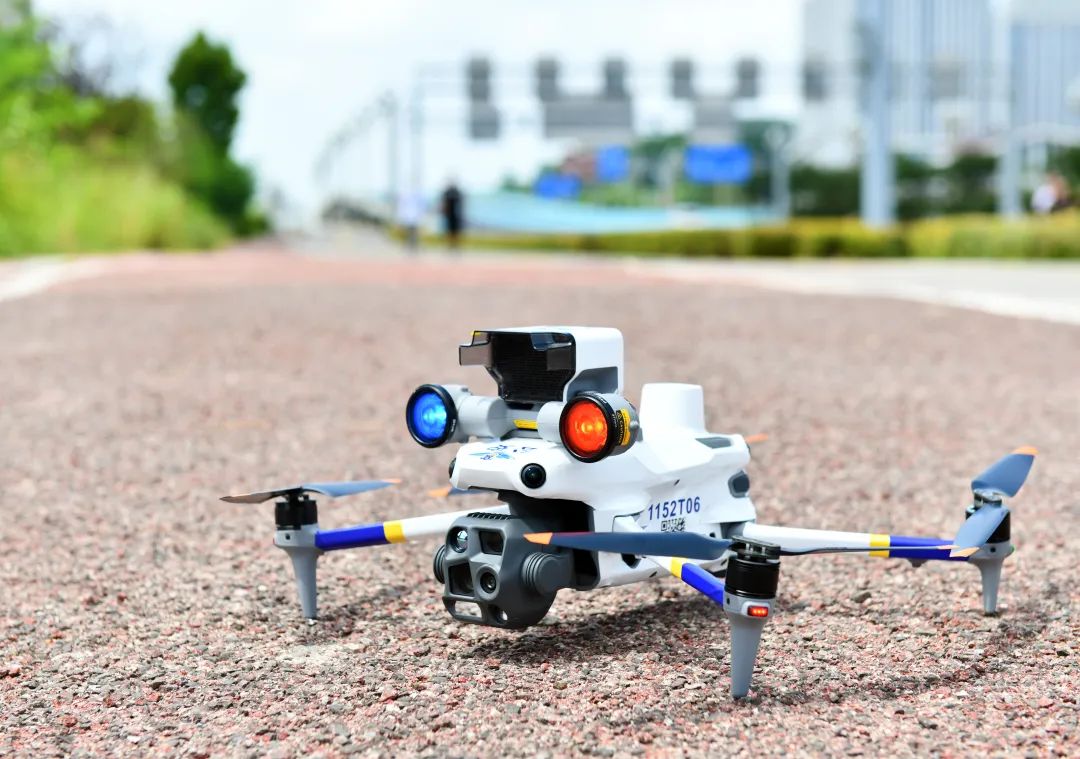 警用无人机在辖区执行巡逻任务