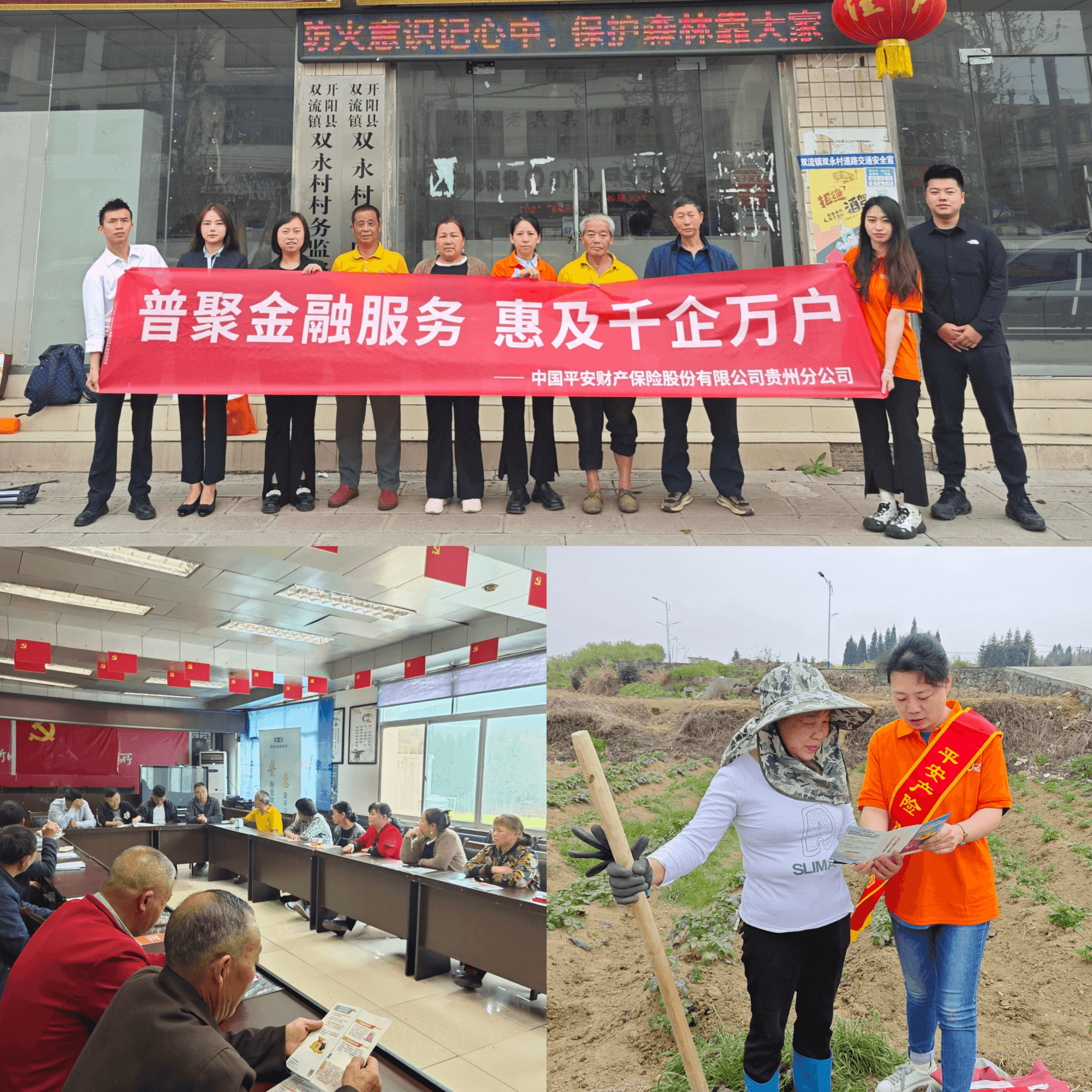 4月3日,走进开阳县双流镇双永村,在村委会及田间地头开展现场调研,充分了解涉农主体和广大村民的保险服务需求,聚焦迫切问题,主动提供多元化、价格适宜、条款易懂的金融产品,为人民群众办实事、解难题,不断提升普惠金融服务幸福感。