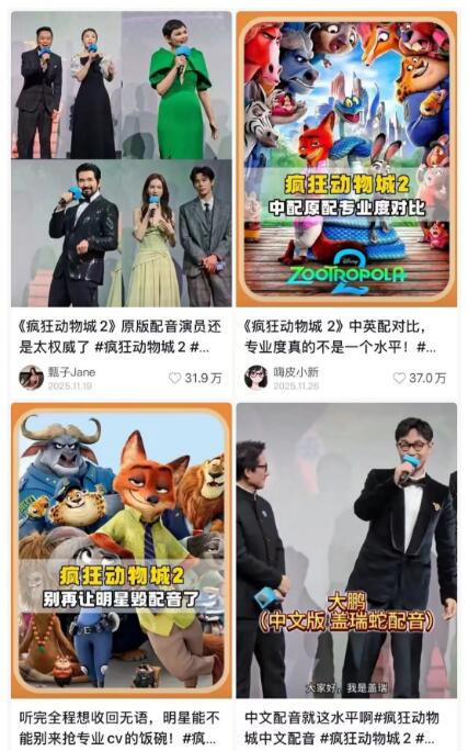 观众对明星效应干扰内容生产早已心生厌倦,这种情绪最近一次集中爆发是在《疯狂动物城2》引进时,不少观众不满明星配音挤占正常宣发空间,连迪士尼为迎合中国本土市场在片尾插播国语歌MV的做法也被质疑“割裂了观影情绪”。