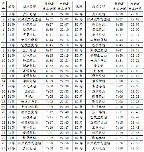 (二)以B1、B2路为试点,对外公示线路首、末班车每站发车时间,进一步满足市民对出行时间可预期的服务需求,提供更加便捷、准时、高效的公交服务。