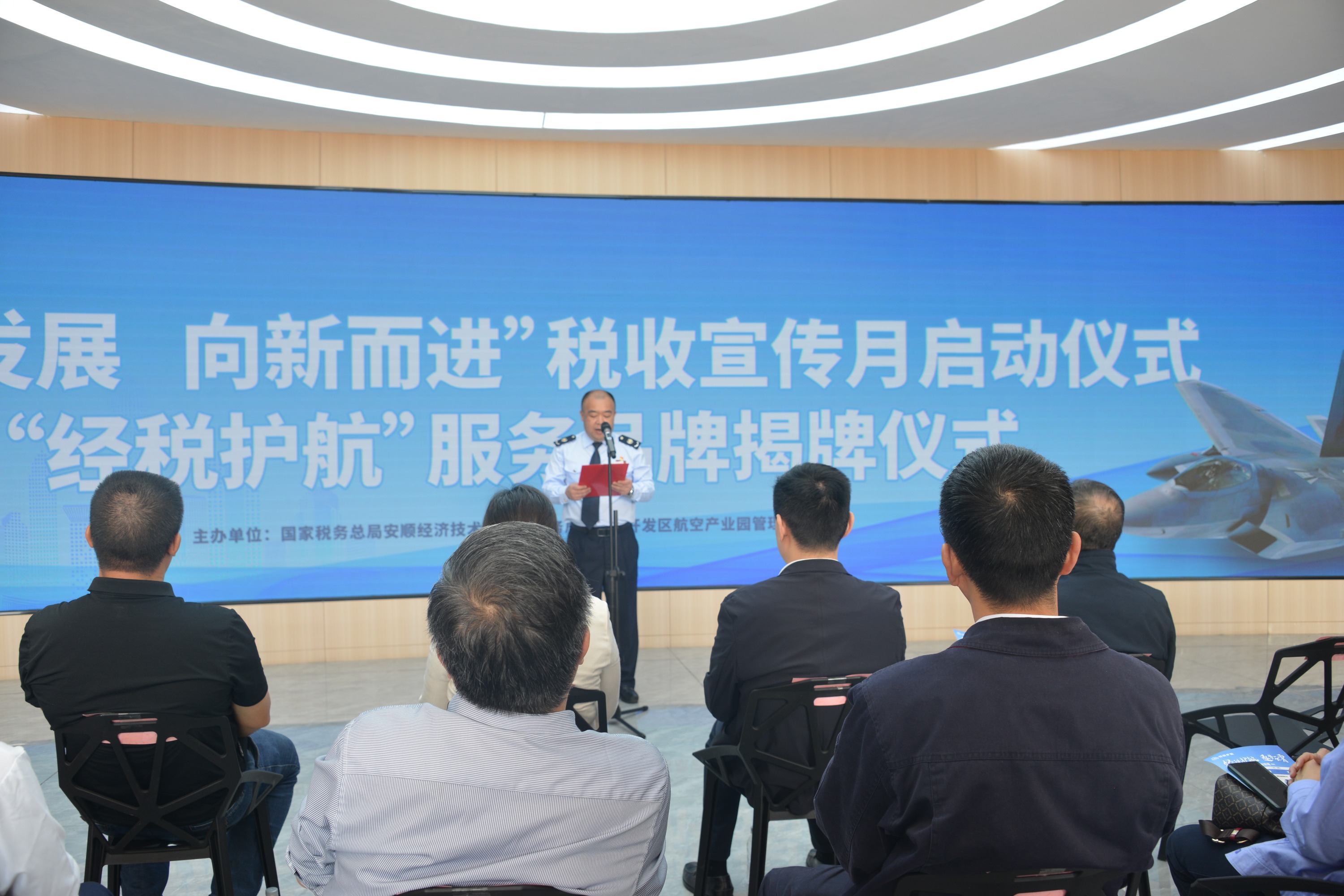 2024年4月2日,国家税务总局安顺经济技术开发区税务局在开发区航空产业园举行了“税助发展 向新而进”全国第33个税收宣传月启动仪式暨“经税护航”服务品牌揭牌仪式。