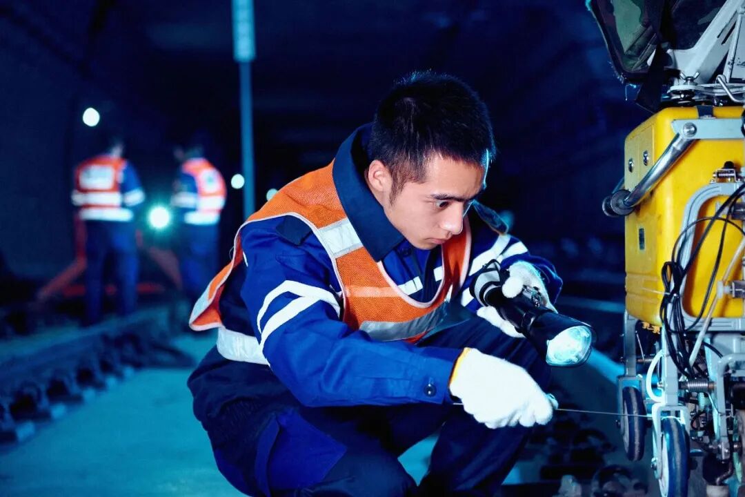 设备维保人员:深夜作业,在轨行区排查信号设备隐患,为地铁安全运行提供技术支撑。