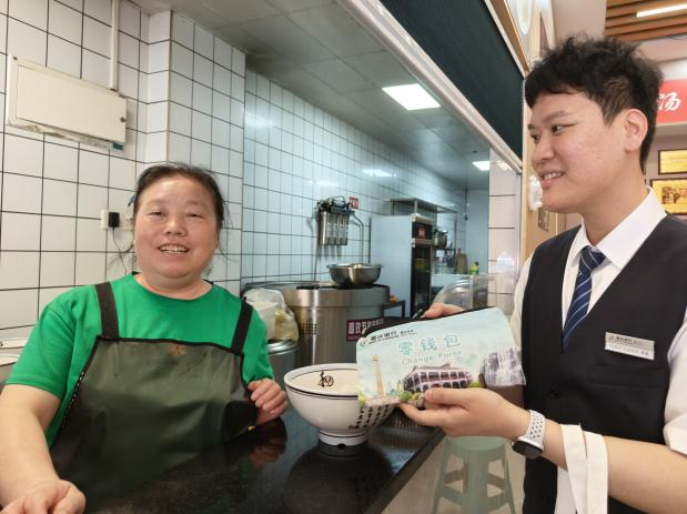 针对日常经营中常见的现金找零难题,该行工作人员深入辖区超市、商户等,为商户经营者、消费者详细介绍了“零钱包”服务的特点和使用方法。