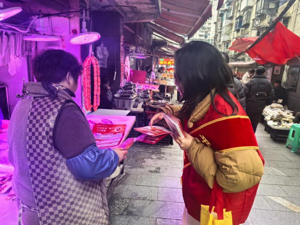 活动当天,宣传志愿者们通过发放宣传折页、现场讲解等形式,向过往市民及市场摊主普及金融知识。针对菜市场老年群体占比高、信息获取渠道单一、防范意识相对薄弱的特点,工作人员重点围绕“防范金融网络乱象”“防非反诈”“守护个人金融信息”等主题开展精准宣传。