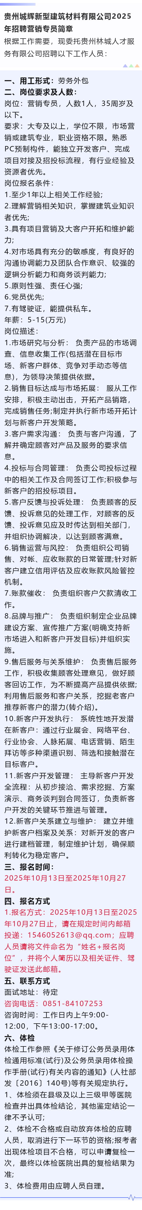【国企】贵州城辉新型建筑材料有限公司招聘!年薪5-15万元!