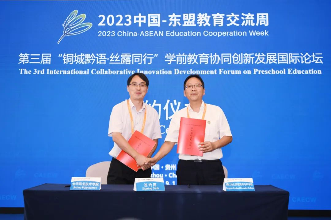 铜仁幼儿师专将与深圳大学共同探讨国际学生(汉语言文学专业、汉语国际教育专业)联合培养,立足双方办学优势和办学资源,扎根中国大地,坚持立德树人根本,培养知华、友华、爱华的人类命运共同体建设者和“中文+”专业技能型人才;与金华职业技术学院在管理体制机制、师资队伍建设、人才培养模式改革、专业及课程建设、实训环境建设、产教融合等方面进行深度的交流学习;与上海市人口早期发展协会共同提升婴幼儿专业人才培养水平、产品研发、科学研究实力及成果转换能力,推动教育和产业的人才、智力、技术、资本、管理等资源要素集聚融合、优势互补,打造产教融合、校企合作的典范;与意大利树人国际教育集团依托“寻根之旅”、“知行贵州”等项目平台,加强双方人文交流、师生互访、学术交流与研究等方面的合作。
