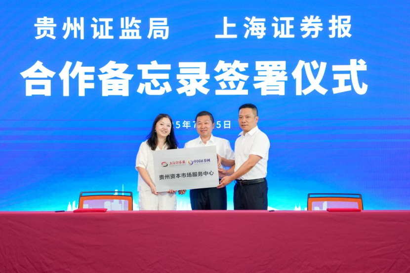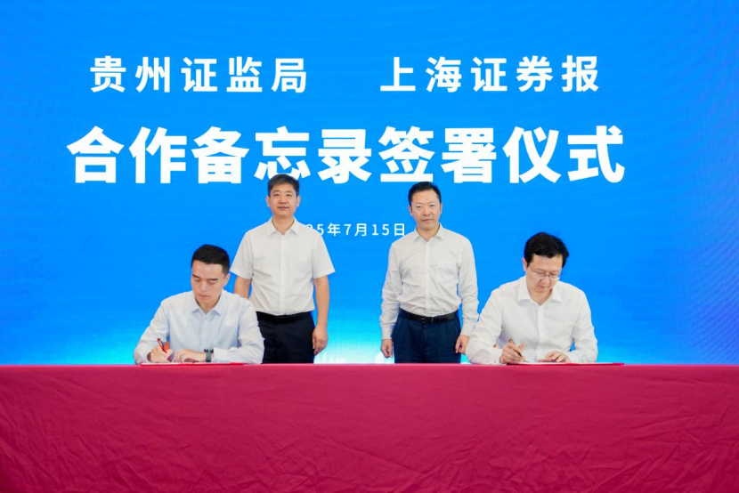 沪上风云起,黔中气象新。近日,黄浦江畔,中国证券监督管理委员会贵州监管局(简称“贵州证监局”)与上海证券报社签署合作备忘录,明确将在监管共治、资源共享、平台共建等方面深化合作——包括设立“上海证券报贵州资本市场服务中心”、联合推出“贵州资本市场高质量发展”系列专题内容与“贵州资本市场价值发现计划”、共建舆情监测机制及投资者教育平台等,标志着双方合作迈入新阶段。