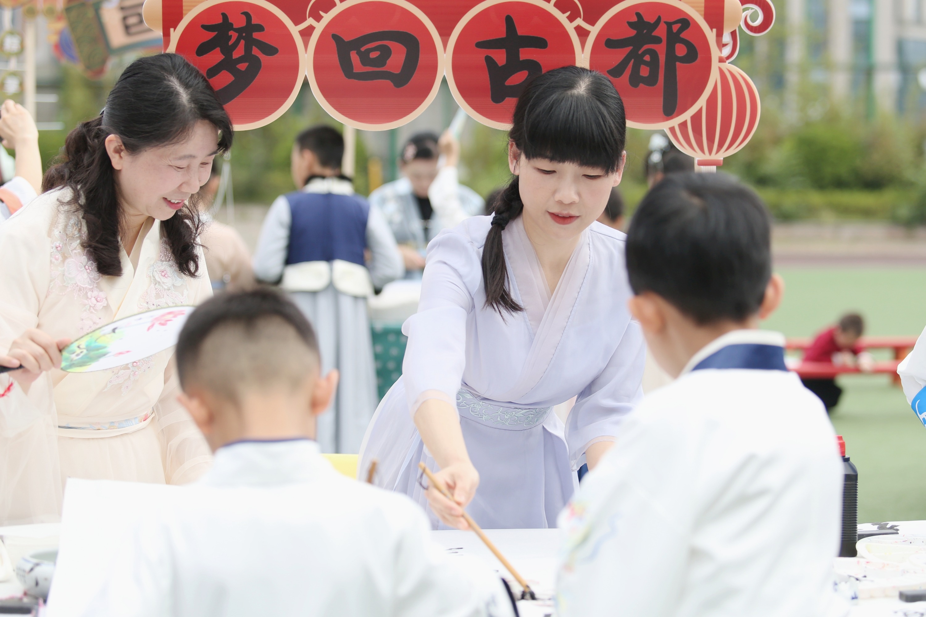 朱雀大街上热闹非凡,琳琅满目的商品摆放在小摊上,穿着汉服的老师和孩子们为古都平添了一份韵味。各位账房“小先生”们,忙碌的身影穿梭在摊位之间。不知各位小儿郎是否有收益呀!