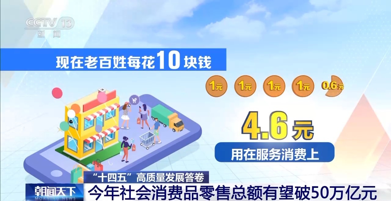 “十四五”期间,我国消费市场规模稳居全球第二,今年社会消费品零售总额有望突破50万亿元人民币。消费对经济增长的年均贡献率达60%左右,一个体量更大、品质更优的消费大市场为中国经济高质量发展提供有力支撑。