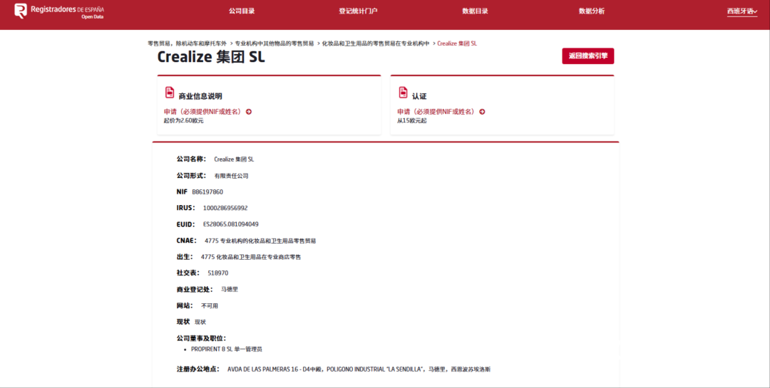 西班牙企业注册信息平台。