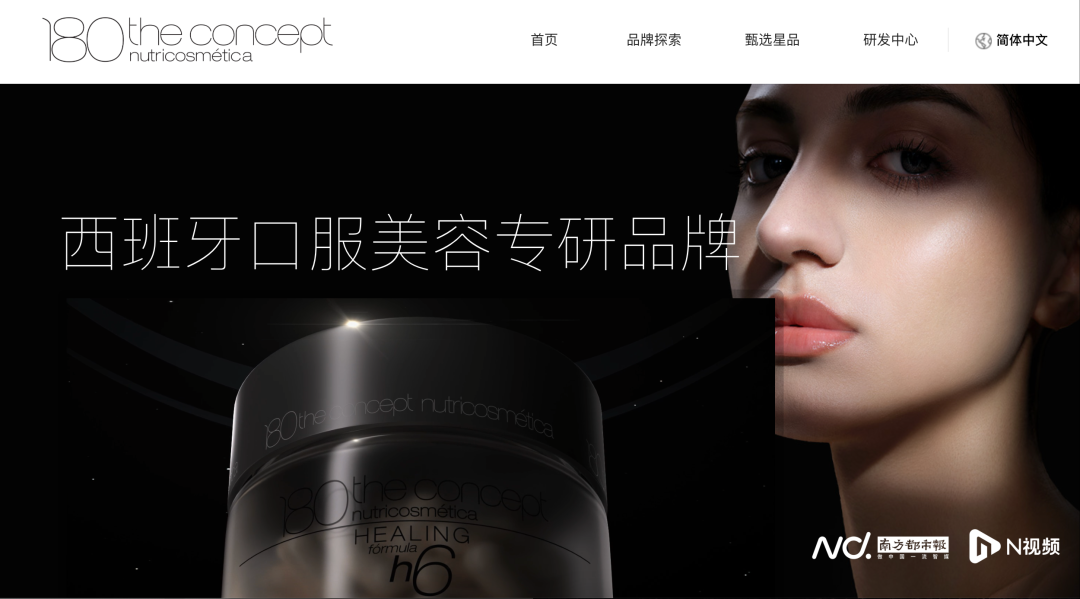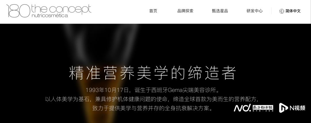 品牌官网及宣传材料显示,概念180自称“源自西班牙的高端口服抗衰品牌,拥有超过30年科研与市场积淀”,独创“六维营养定位体系”,宣称能“以科学视角精准解析衰老根源,融合美学与营养提供全面抗衰解决方案”。
