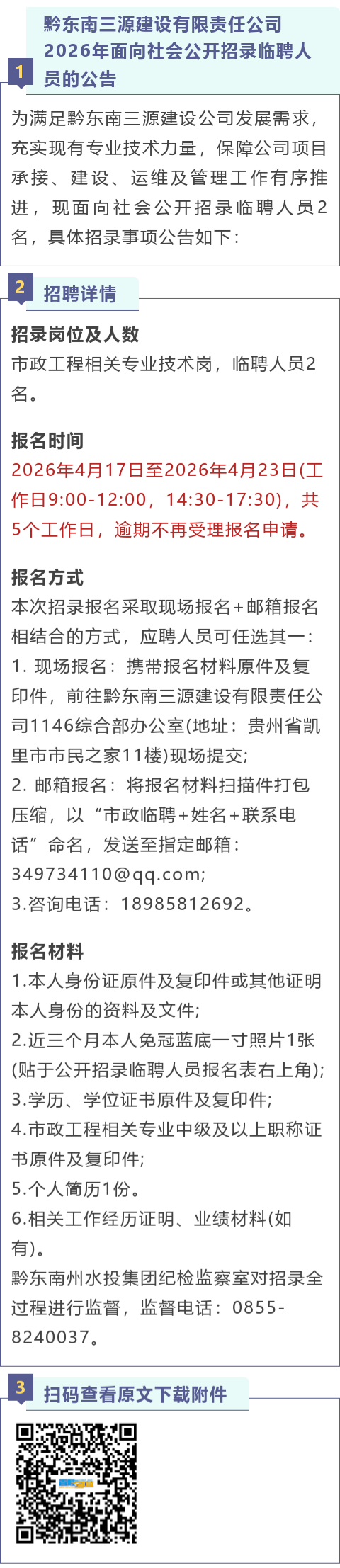 【国企】招聘市政工程相关专业技术岗!大专起报!
