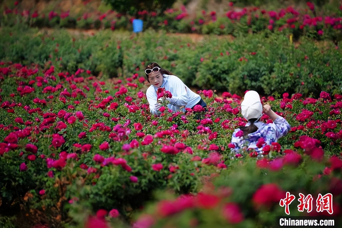 云南安宁千亩玫瑰“结硕果” 花农花企共酿“甜蜜经济”
