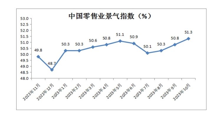 ▲10月份中国零售业景气指数为51.3%,较上月微升0.5个百分点。中国商业联合会表示,随着国家多项政策措施落地实施,叠加“双节”消费旺季带动,我国零售企业对10月份景气状况呈现良好预期,多项正向指标创近一年新高。【详情】