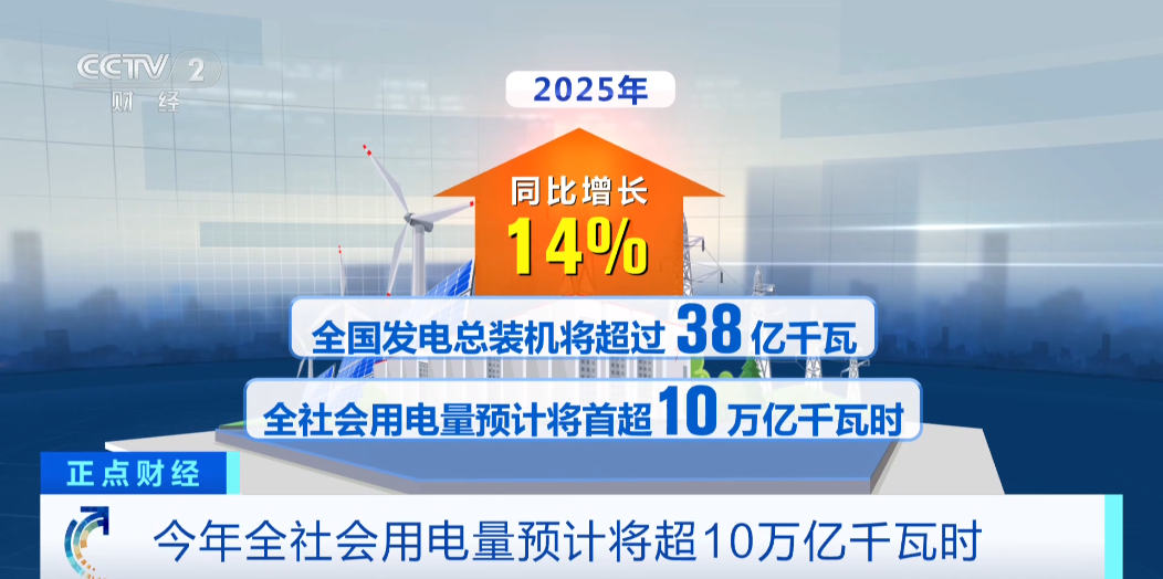 国家能源局最新预测数据显示,2025年,全国发电总装机将超过38亿千瓦,同比增长14%,全社会用电量预计将首超10万亿千瓦时。从纵向比,这是我国2015年全年全社会用电量的约两倍;从横向看,高于欧盟、俄罗斯、印度、日本全年全社会用电量的总和。