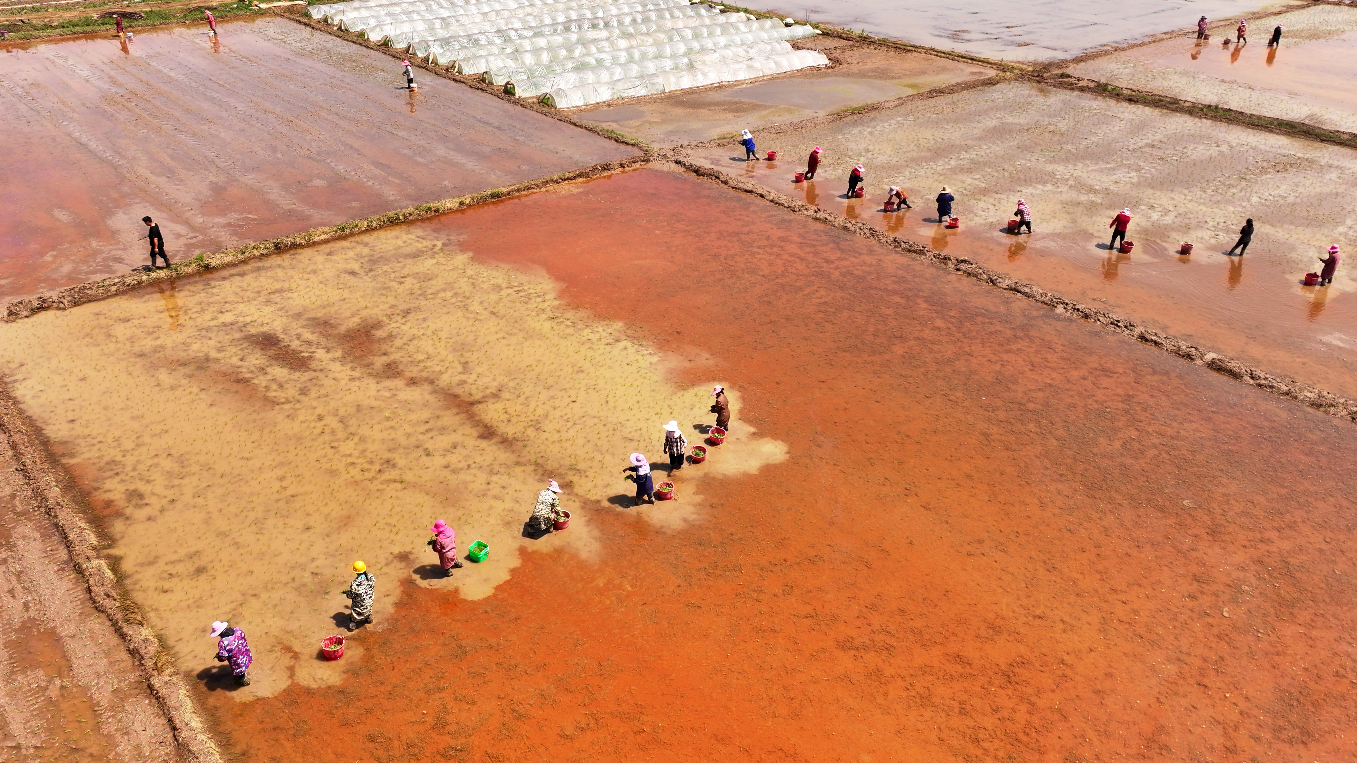 4月5日,江西省吉安市永丰县佐龙乡西塘村,农民在高标准农田中栽插早稻秧苗。近年来,江西省吉安市永丰县围绕“稳粮、优供、增效”目标,持续建设“地平整、田成方、路相通、渠相连、旱能灌、涝能排”的高标准农田,改善农业生态环境,保障粮食安全,助力乡村振兴。作者:刘浩军