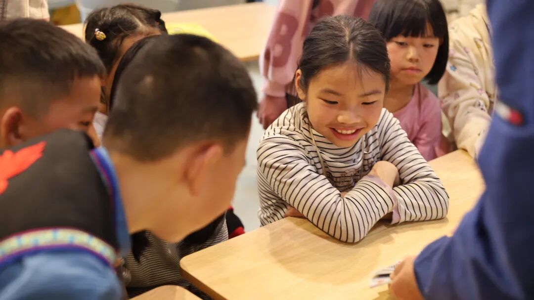 课堂上,志愿者以扑克牌为道具,演绎着奇妙场景,孩子们紧盯志愿者的动作,眼里满是惊叹与疑惑。在志愿者的耐心指导下,孩子们亲手尝试简单的魔术技巧,从羞涩不敢动手到主动展示成果,在一次次尝试中锻炼了专注力、手指灵活度,更收获了满满的自信与快乐。