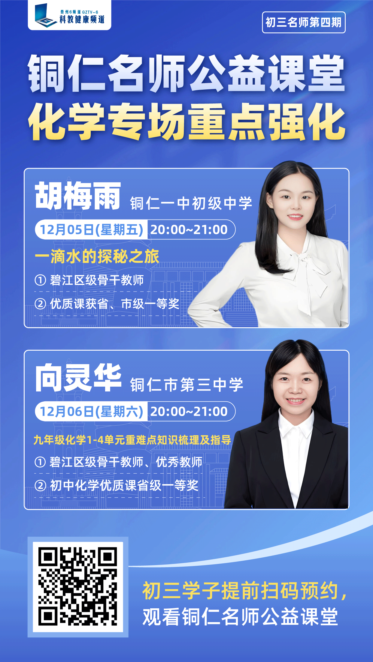 本周邀请铜仁一中初级中学胡梅雨老师与铜仁市第三中学向灵华老师带来化学专场授课!