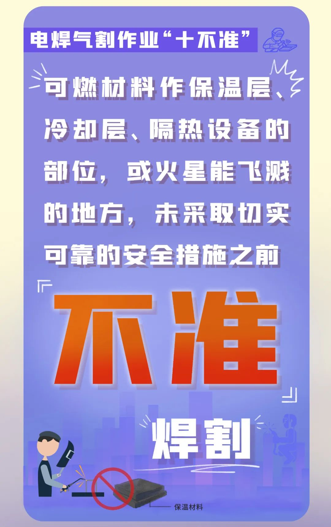 贵阳市消防救援支队提醒,电焊作业存在潜在危险,如果防范措施不到位,轻则造成财产损失,重则导致人员伤亡,电焊作业如何预防火灾?“十不准”须牢记!