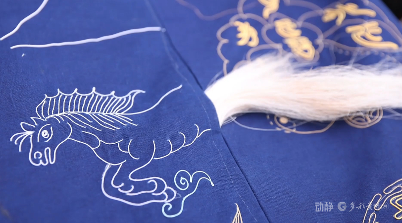 马尾绣,素有“刺绣活化石”之称。它以马尾缠丝为芯,外绕彩色丝线,工艺繁复细腻。这幅《奔腾骏马图》从构思到完成,历时两个多月。每一针、每一线勾勒出的,不仅是骏马奔腾的雄姿,更传递着水族人对幸福生活的向往。