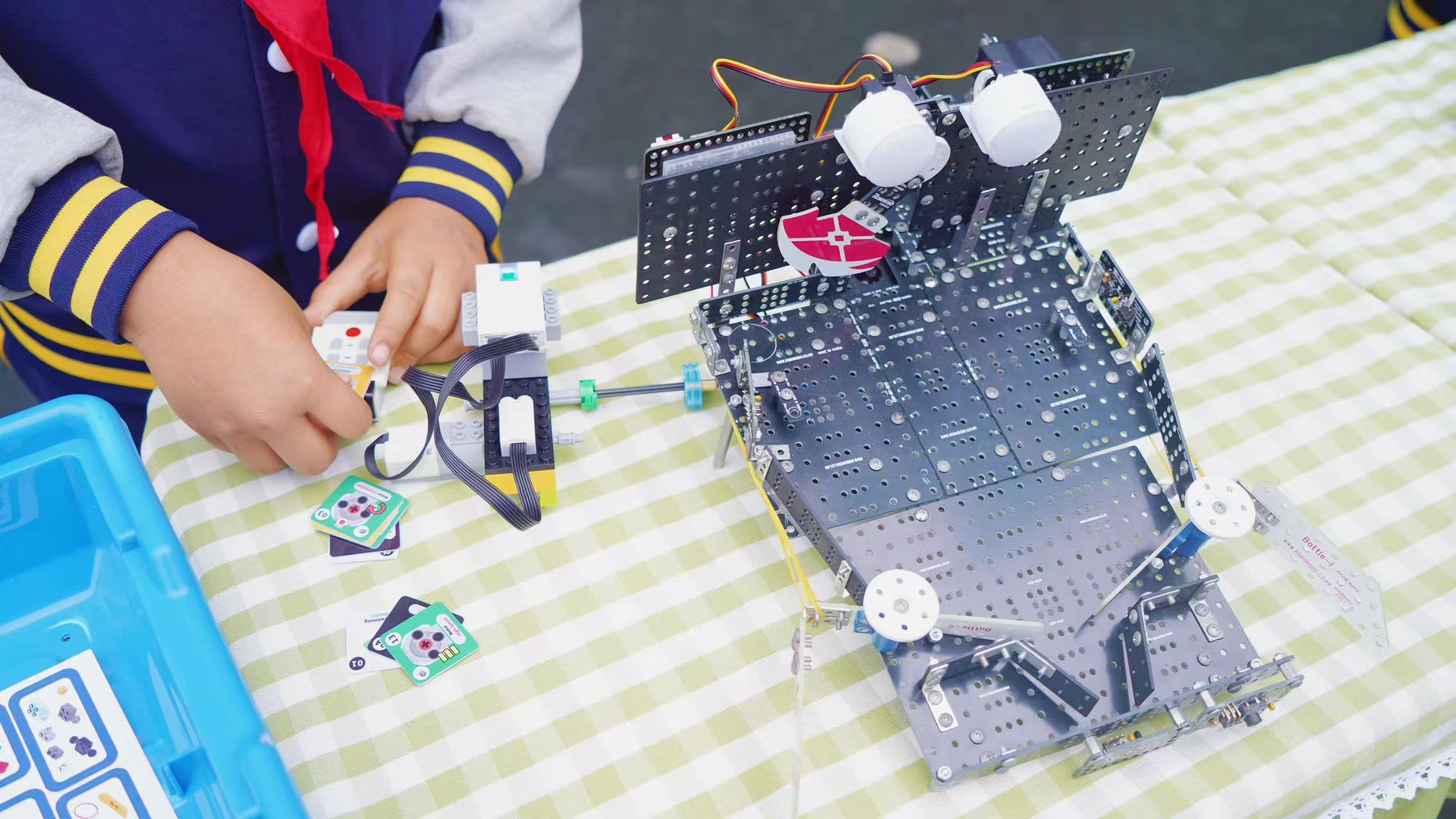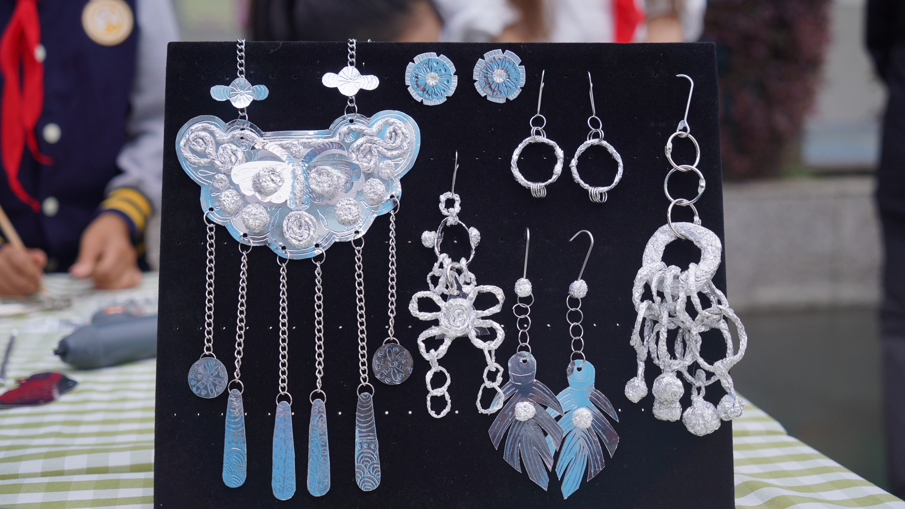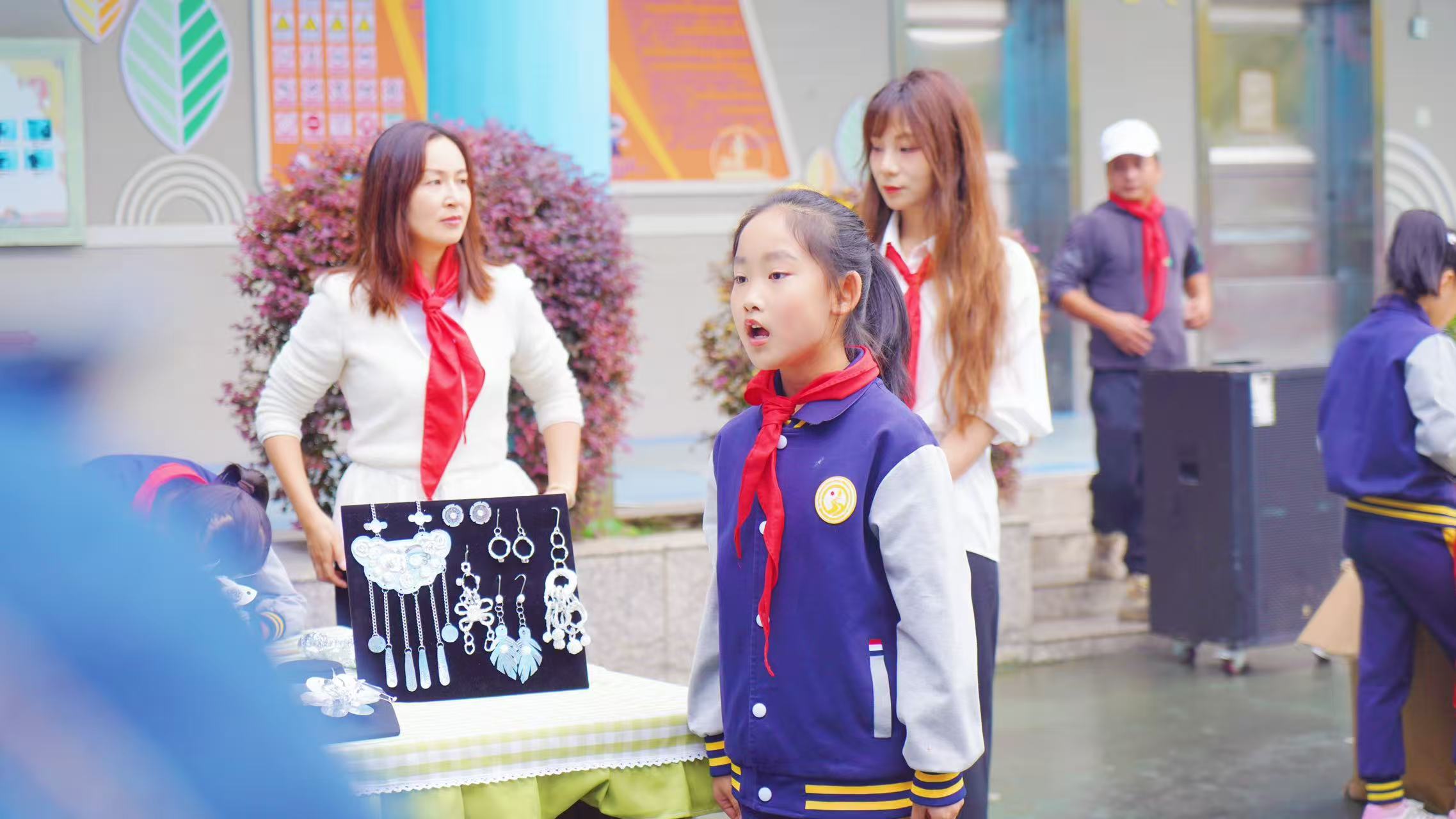 嘉宾们在少先队员礼仪队的引导下,参观了“红领巾”社团静态展示区。凌云航模社、方块梦想家、匠心银饰、纸韵社等社团通过作品陈列、现场演示讲解,充分展现了学校的育人特色。