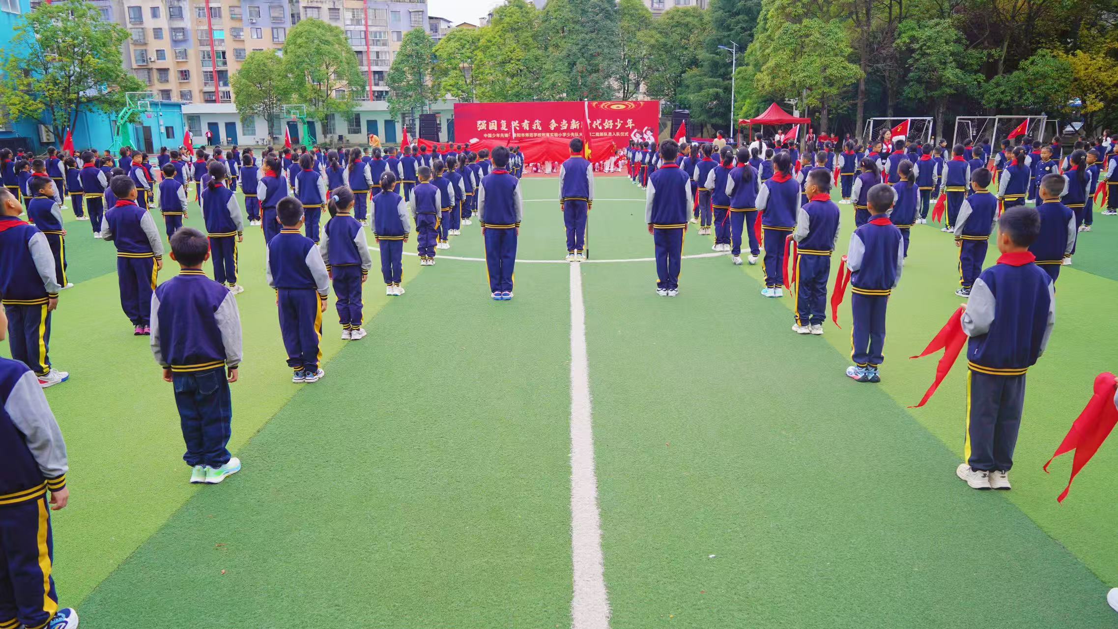 在全体队员的呼号声中仪式圆满结束。本次活动让新队员深刻感受到加入少先队的光荣与责任。未来,贵阳市师范学校附属实验小学将继续以 “五育并举”为导向,引导少年儿童传承红色基因,树立远大理想,为强国复兴培养时代新人。