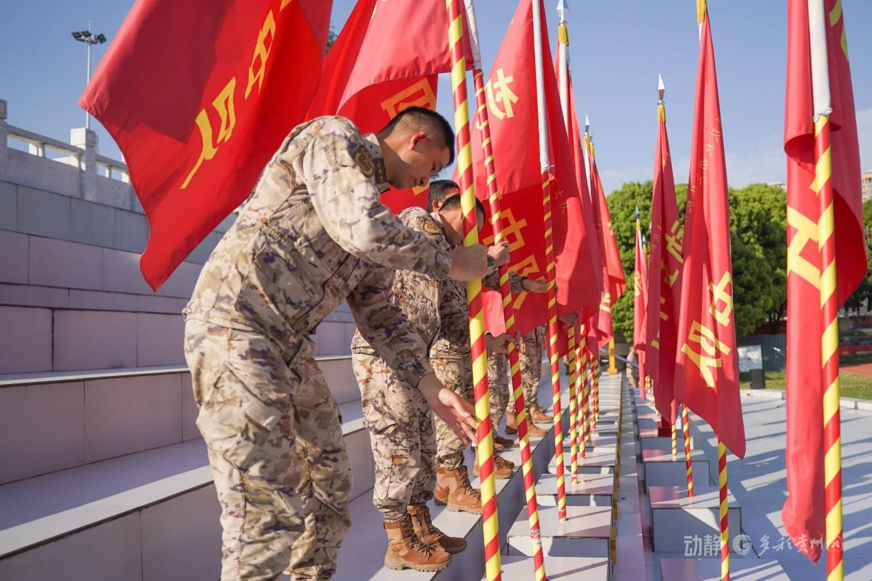 “找找我们的队旗”,找的是归属,树的是标杆。活动现场,各单位代表身着戎装、身姿挺拔,高擎鲜红队旗伫立在队列前方。猎猎飘扬的队旗,瞬间点燃了全体官兵的集体荣誉感。