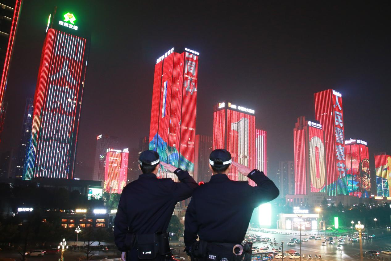 1月10日,是第六个中国人民警察节。为展现观山湖公安的精神风貌与为民情怀,1月9日19时30分,贵阳市观山湖区金融城的多栋高楼同时亮灯,以璀璨光影向人民警察致以真挚的节日祝福。