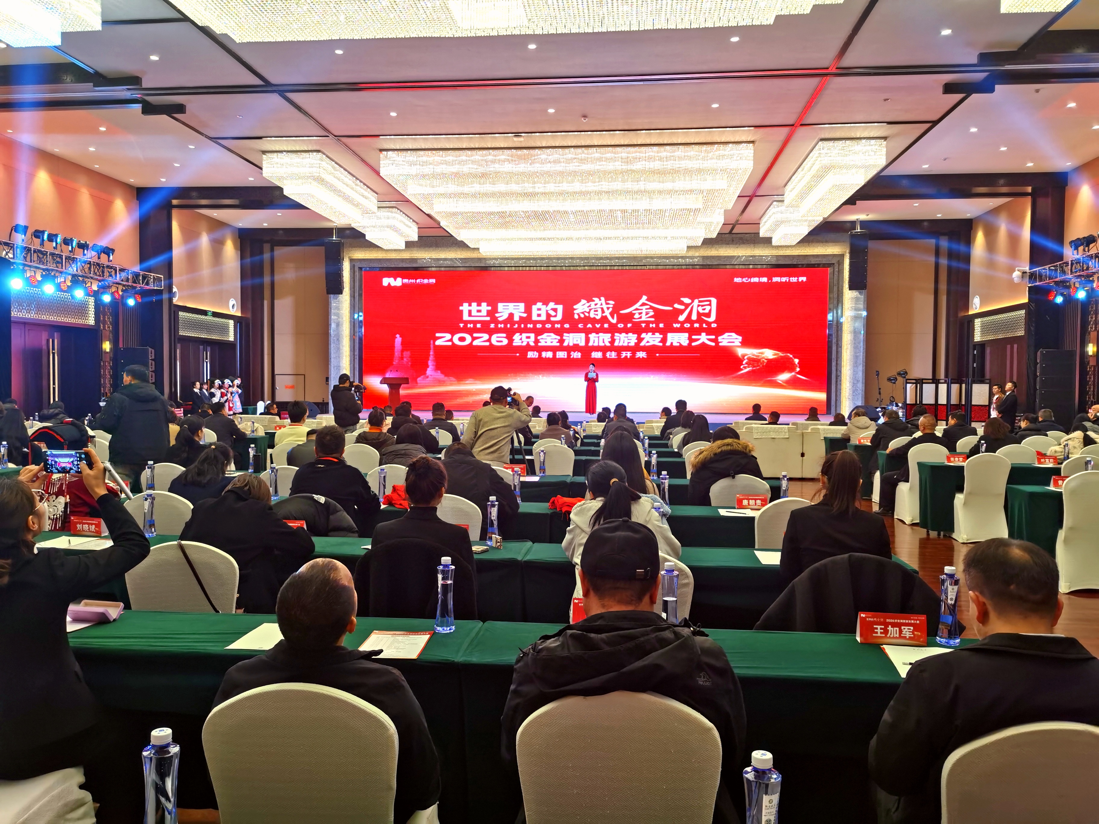 1月29日,2026织金洞旅游发展大会在织金饭店举行。本次大会由贵州织金洞旅游开发有限责任公司主办,邀请了来自省内外100多家旅行社、OTA平台、主流媒体、景区代表及各领域合作单位齐聚一堂,擘画织金洞世界地质公园高质量发展新蓝图。
