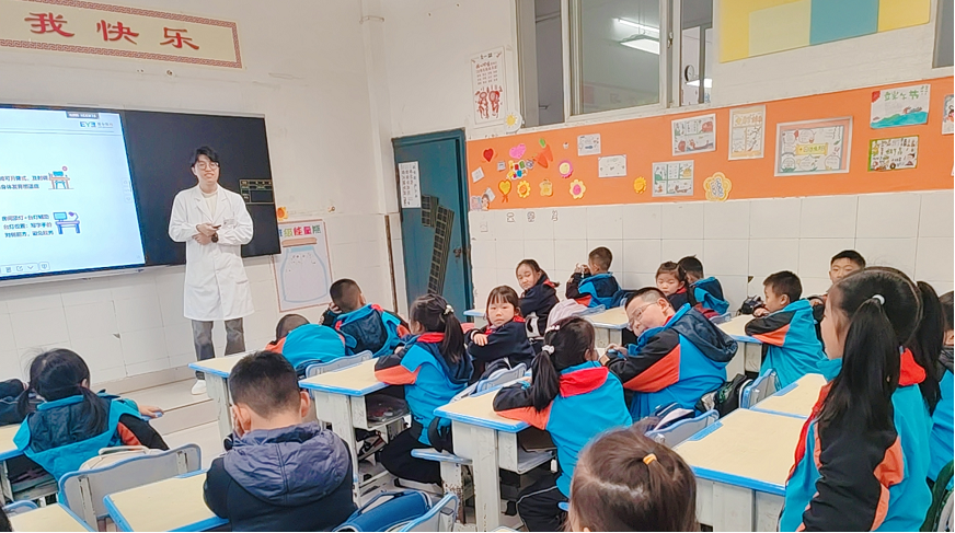 为增强宣讲效果,团队还设置了互动问答环节。“长时间看手机怎样保护眼睛?”“户外活动为什么能防近视?”学生们积极举手、踊跃提问,宣讲人员耐心解答每一个问题,让科普学习更具趣味性。