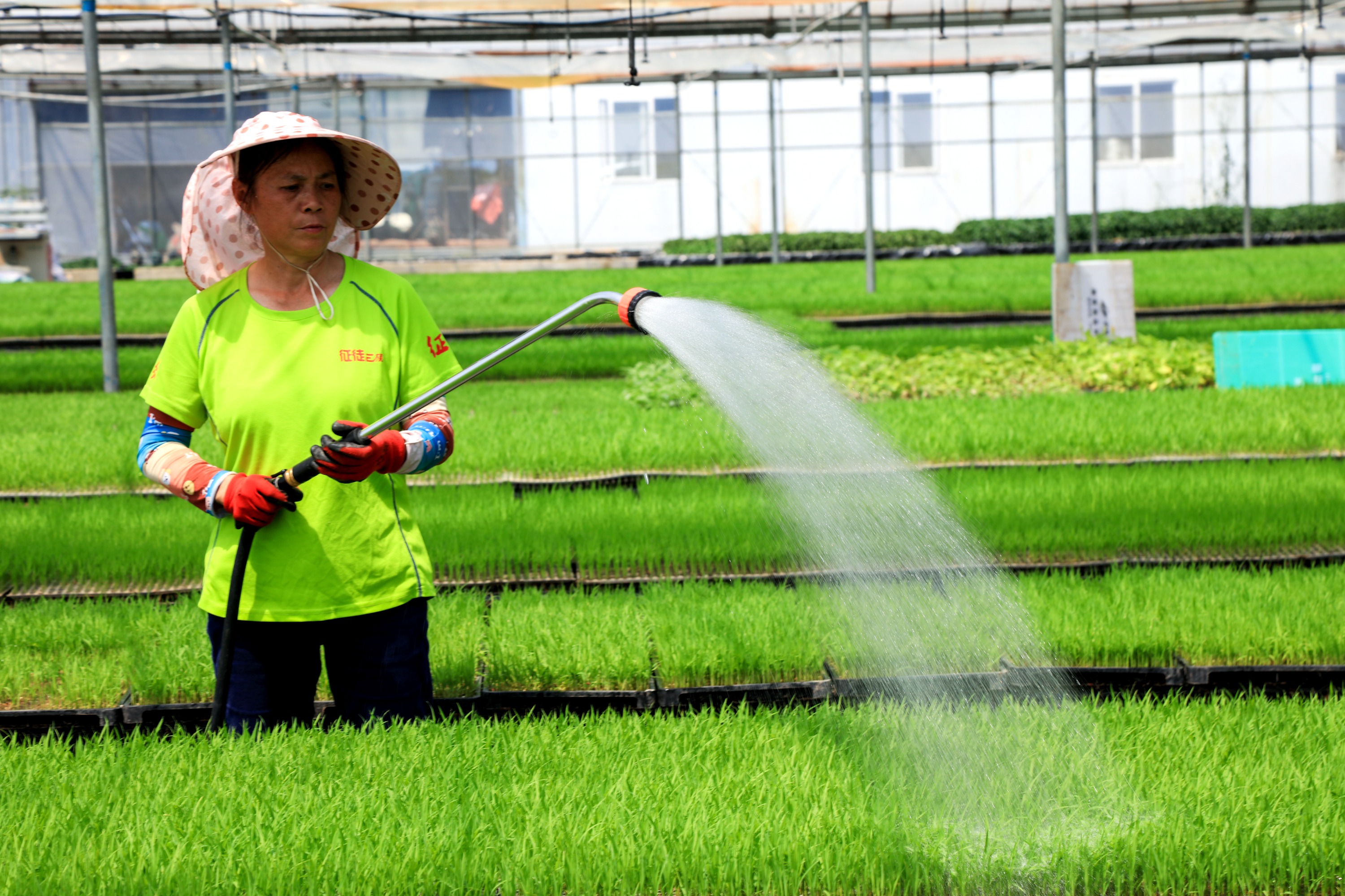 在育苗基地的智能玻璃大棚内,先进的水稻无纺布钵苗育秧技术已培育出嫩绿健壮的秧苗,这些秧苗选用了泰优808、宜香优2115等省级主导品种,为水稻试验示范插秧工作提供了优质种苗。