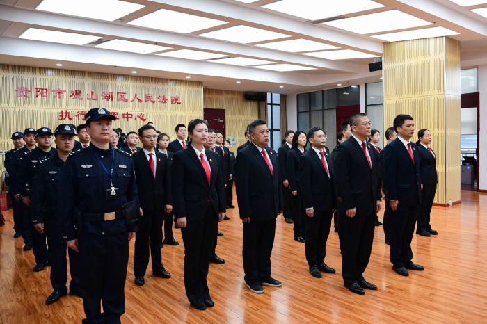“贵阳市观山湖区人民法院‘贵在执行’之‘小标的·大民生’专项执行行动,现在开始!”随着出发指令下达,观山湖区人民法院全体执行干警闻令而动,奔赴执行现场。
