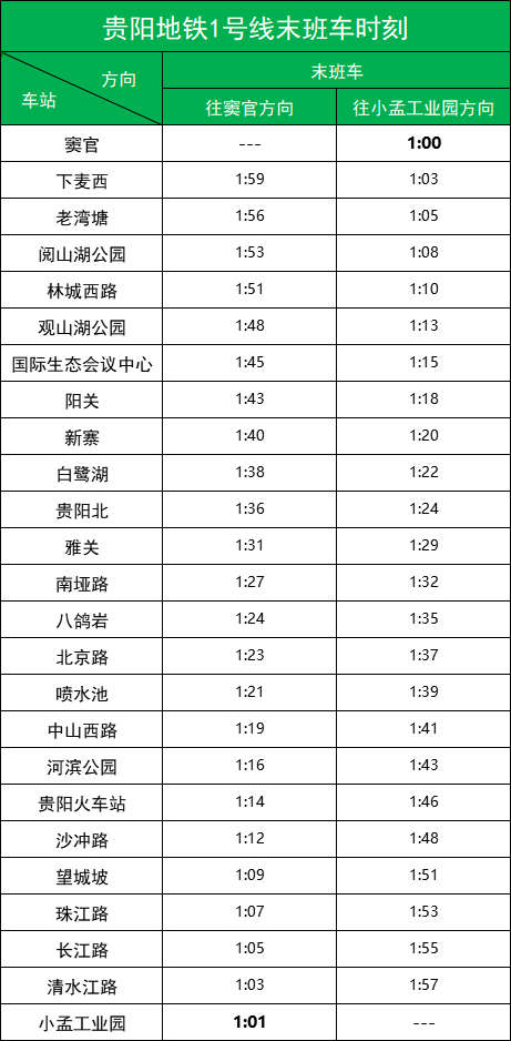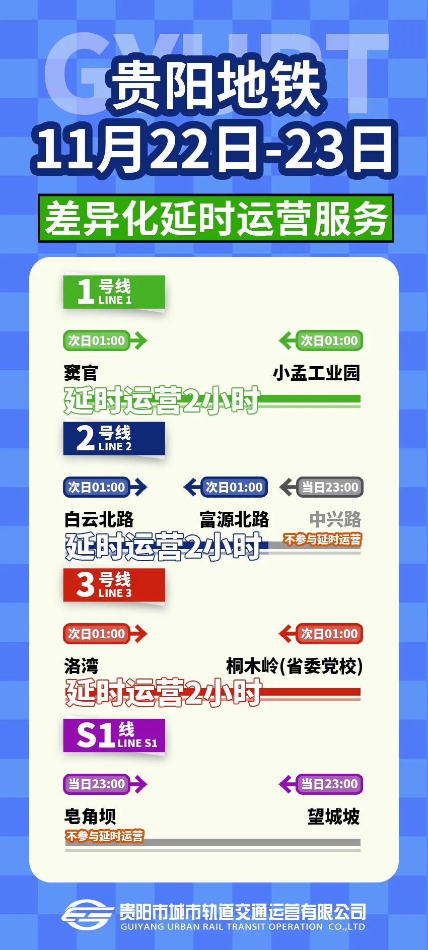 11月22日至23日,贵阳地铁部分线路及区段将延长运营时间