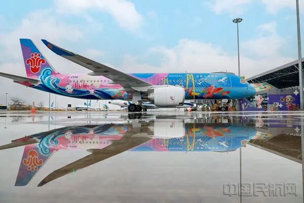 近日,国内首架C919十五运会彩绘飞机“大美湾区”号搭载157名旅客从广州白云国际机场顺利起飞,前往上海虹桥国际机场,该飞机是南航第7架C919国产大飞机,执飞广州—上海虹桥往返航线。此次“大美湾区”号彩绘机的首航,既是国产大飞机商业化运营的重要成果,也是中国民航携手国家重大体育盛会的创新实践。
