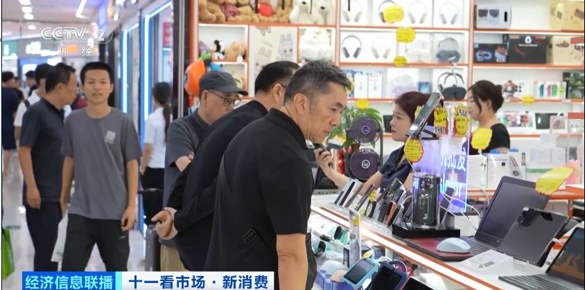 在华强北,从智能穿戴到AI玩具,各类电子产品柜台前都有不少提着大包小包的游客驻足,新奇的产品吸引各个年龄段的消费者询价、购买。眼下,正值消费电子新品发布季,也大幅带动了卖场的销售。