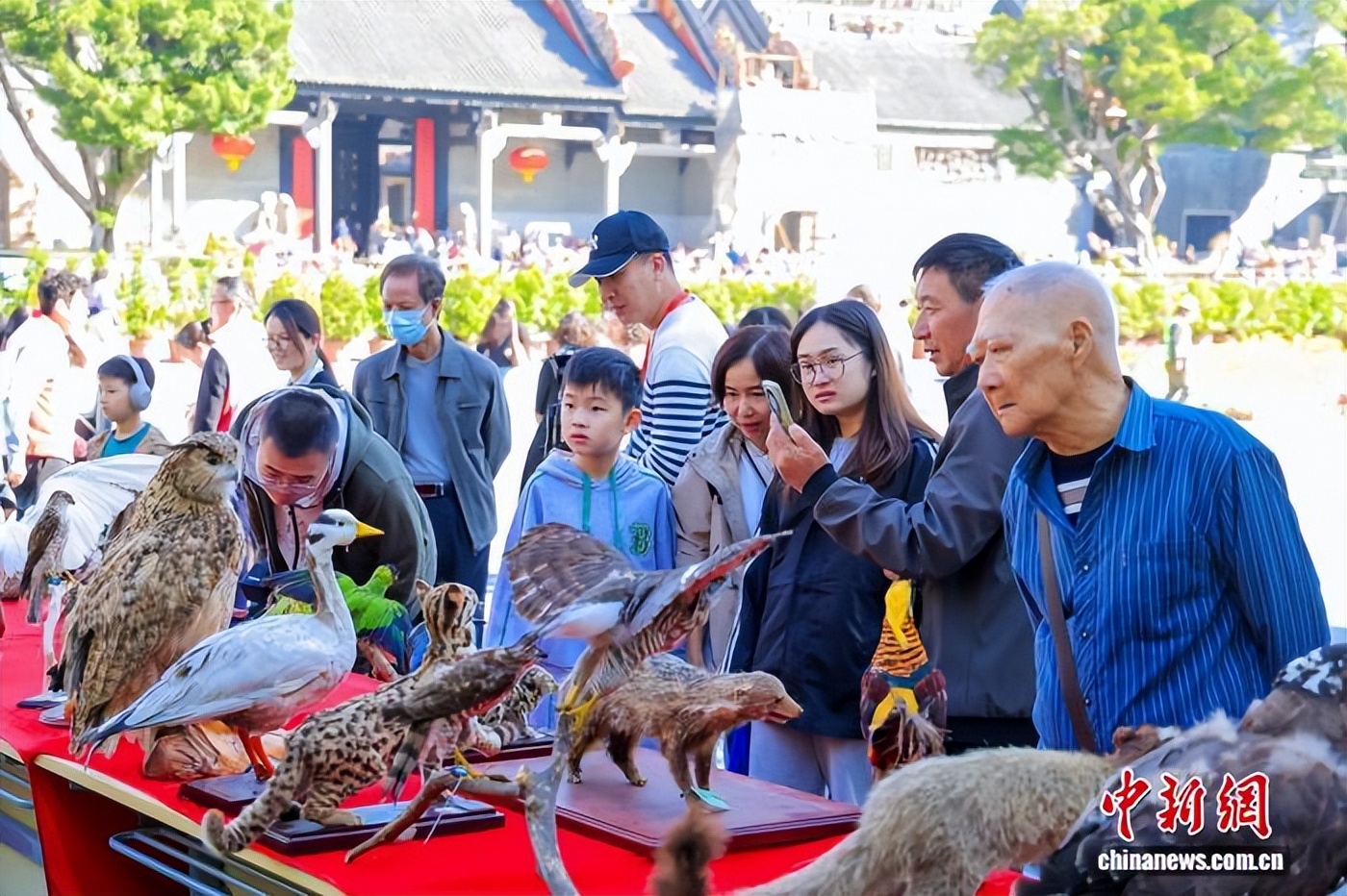 广东省暨广州市第三十五届“保护野生动物宣传月”宣传活动近日在广州市陈家祠广场举行。图为市民正在观看野生动物标本。广州市林业和园林局 供图
