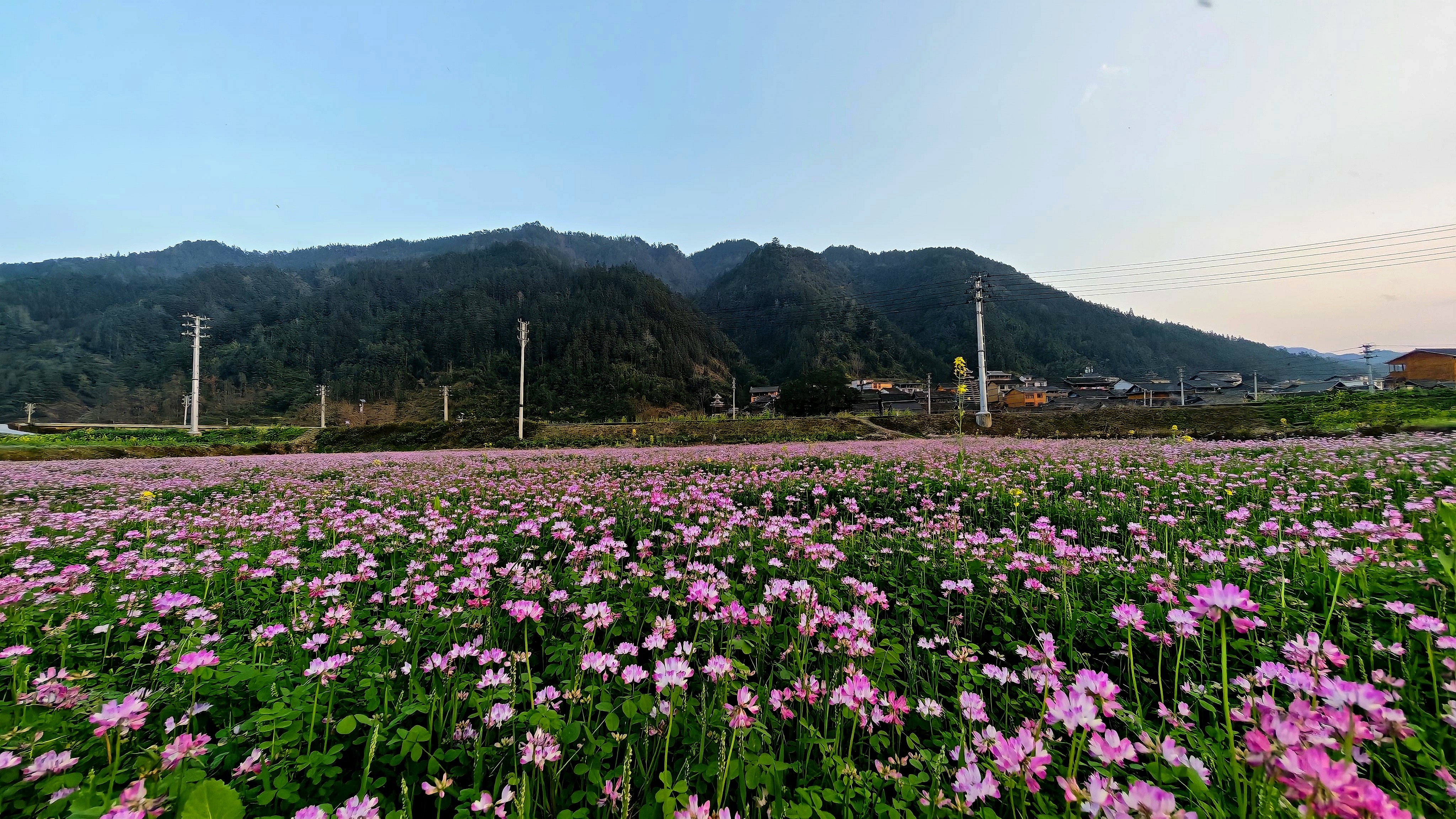 近日,春风和煦,万物复苏。在贵州省黎平县双江镇四寨、寨高坝区,1000余亩油菜花与紫云英花次第绽放,山水田园间,朵朵花蕊弥漫着淡淡清香。