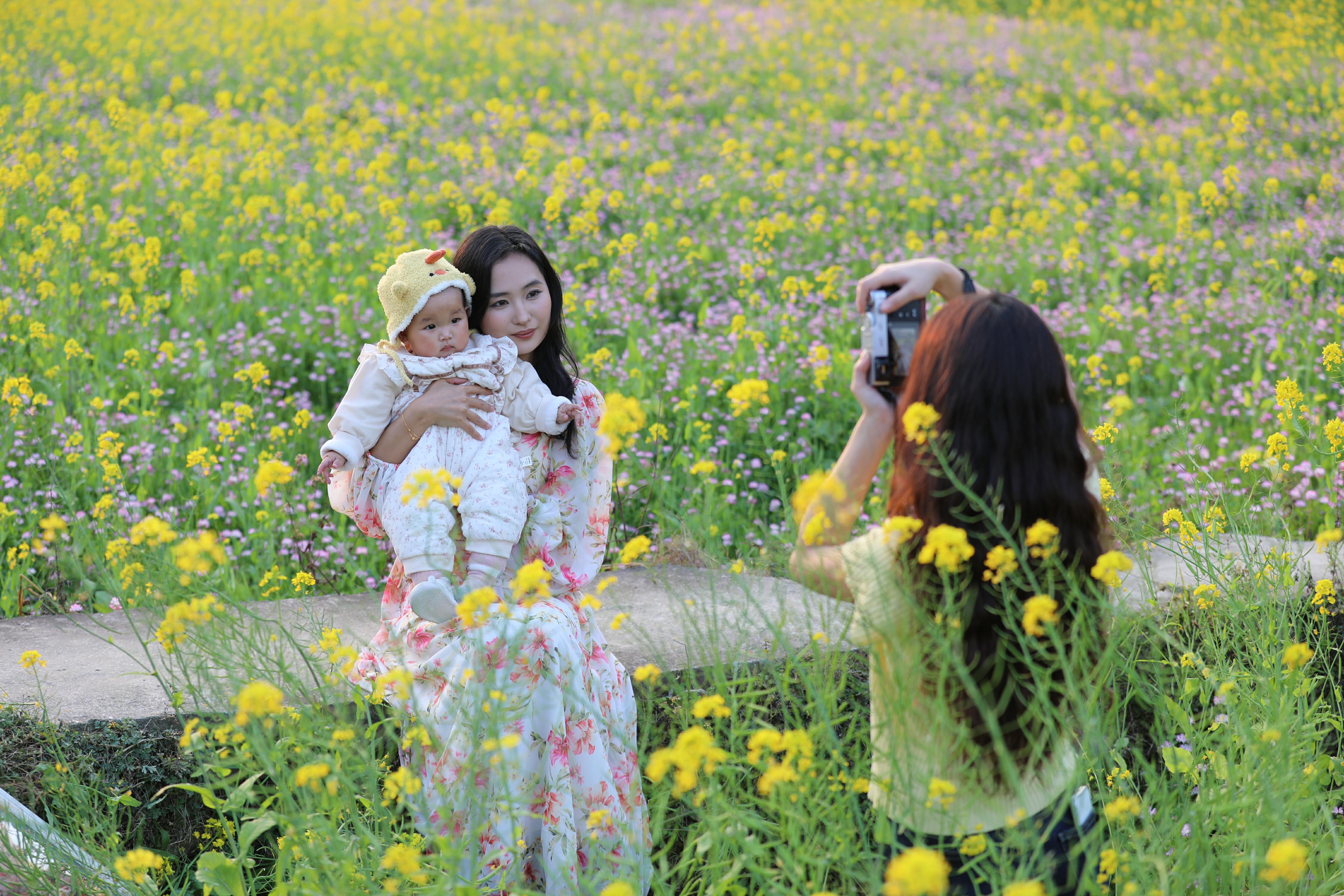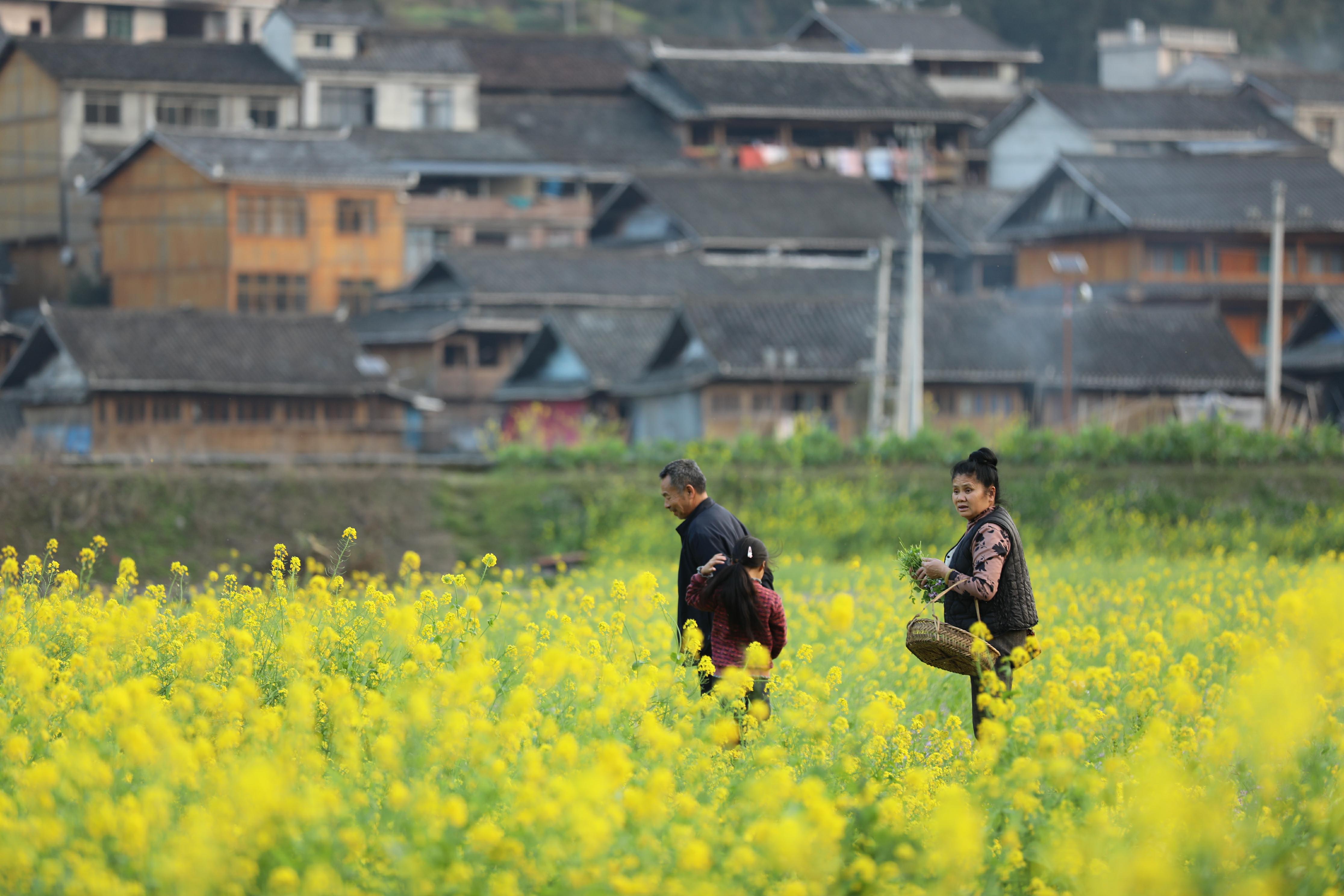 薰风徐来,田间花浪翻涌,与不远处的青山、河流、农家吊脚楼相映成画,吸引游人前来踏青、打卡,共赴这场春日之约。