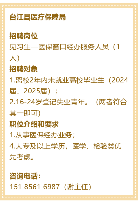 【行政单位】招聘医保窗口经办服务人员!大专起报!