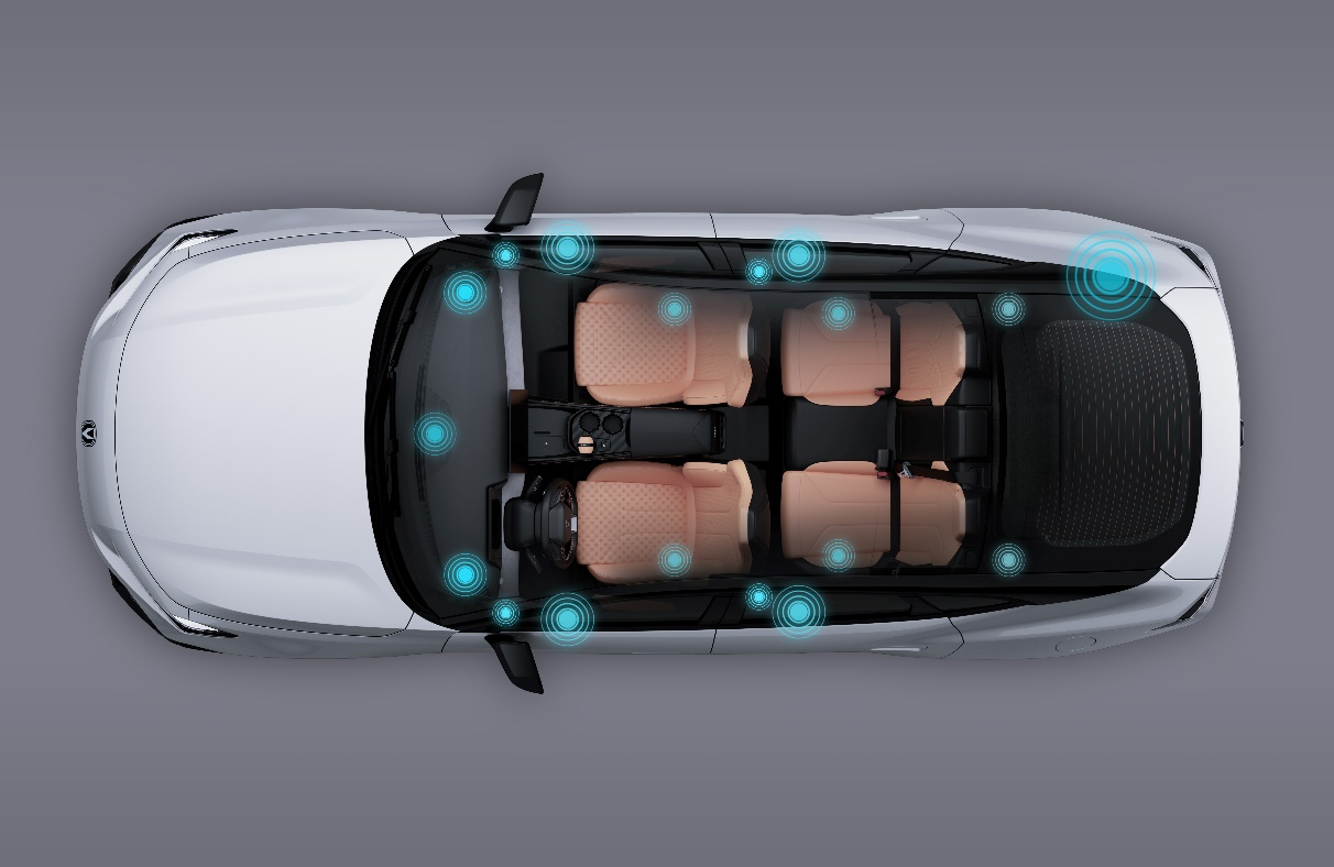 年轻用户对座舱影音娱乐的需求越来越高,第三代UNI-V便越级搭载同级独有的18个扬声器和杜比全景声,由长安汽车声学专家团队与杜比共同组建联合实验室,针对1000+调音点精准定位,通过“虚拟环绕+空间反射”技术精准控制三维声场,搭配超 2000 个调校点的大型调音网络,实现声音高保真还原,确保全车听感均衡。结合全球首发搭载腾讯参与孵化的AI座舱品牌TTi 旗下Sound AI音效算法、真7.14全景环绕声、六大音效模式,第三代UNI-V以全维度技术突破重构车载音效体验,让每个座位都能享受“声临其境”的沉浸式听觉盛宴。