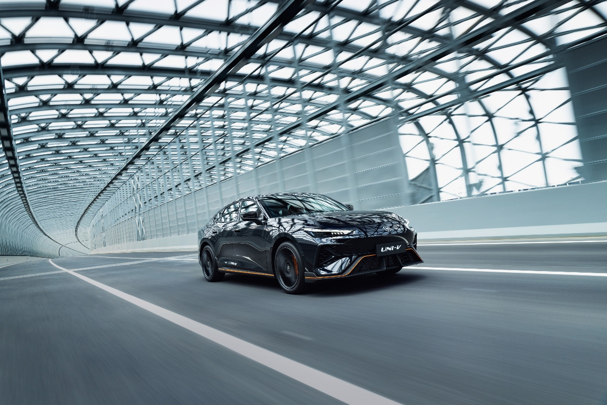用户对汽车的产品需求正由“出行工具”转向“自我表达载体”,这意味着好的产品外观不仅要符合他们的审美,更要与他们的人生态度共鸣。对此,第三代UNI-V采用专为年轻灵魂定制的“未来先锋运动美学”设计语言,1:3.3的极致头身比,使整车侧面看上去更加修长舒展;3倍轮轴比设计,让车轮与轴距在视觉上达成了一种精妙平衡;而0.78倍的黄金高宽比配合2.18倍的轮高比,让车身呈现出高性能轿跑该有的低趴运动姿态,宽体车身也进一步提升了乘坐舒适性。