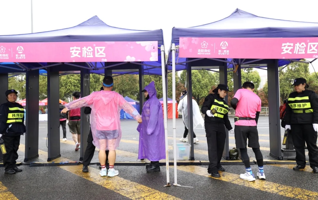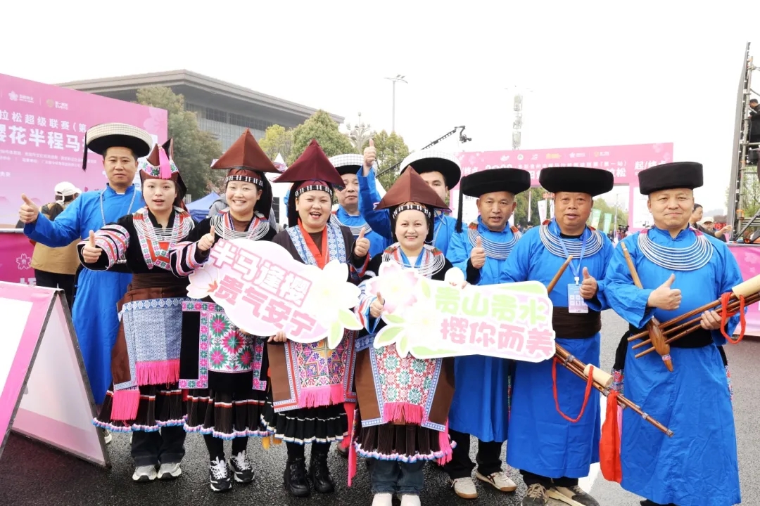 赛道旁,9条从全国征集而来的创意口号以视觉装置的形式呈现,“穿过樱花雨,跑进春天里”“樱落贵安山水间,跑者逐风勇争先”等语句,为跑者注入了满满的精神动力 。