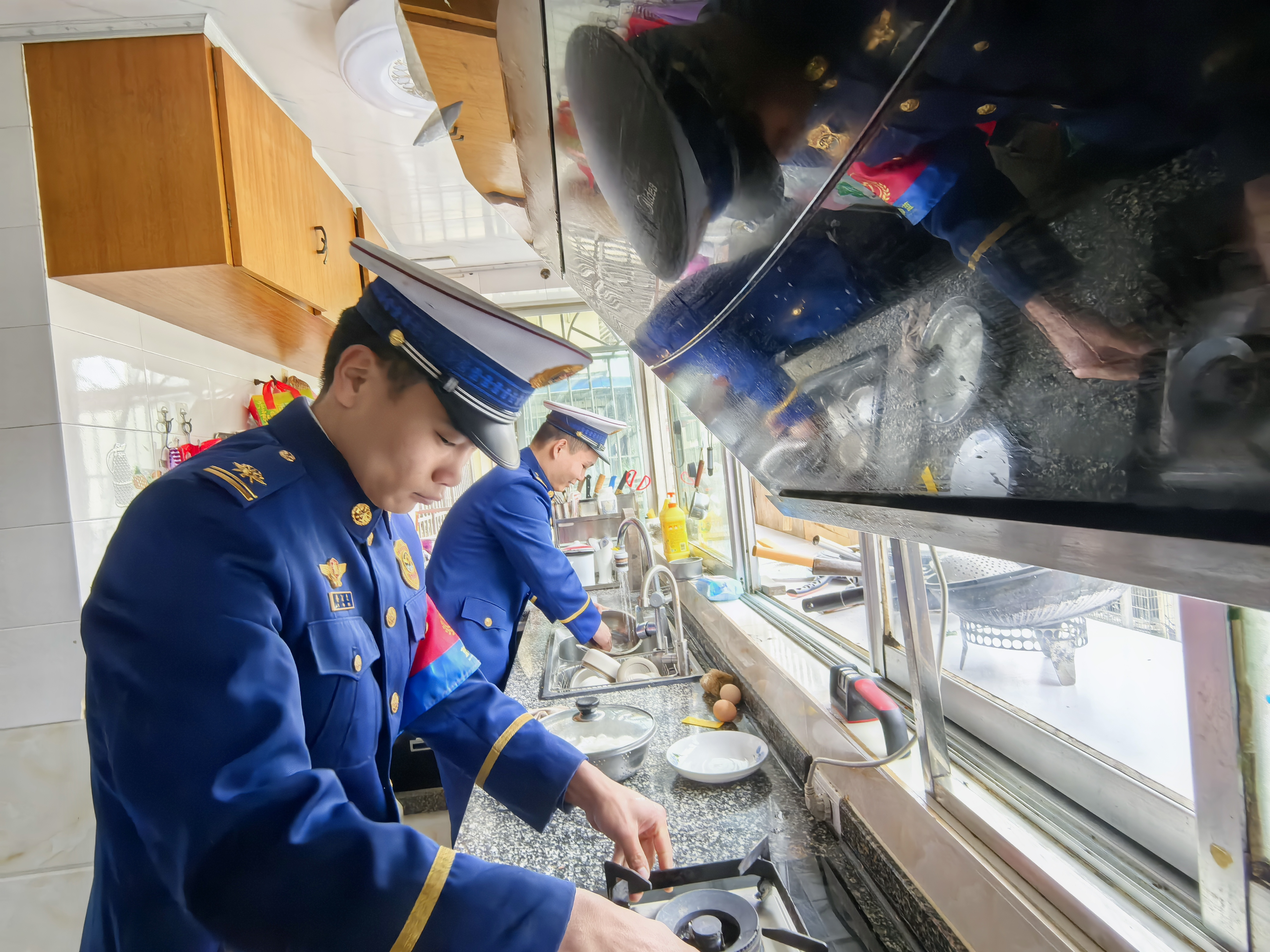 期间,志愿服务队还联合大山洞基干民兵一起走进抗美援朝参战老兵及特殊老人家中,帮助打扫住宅卫生、整理家务、清洗碗筷和油烟机,与老人亲切交谈,详细了解他们的生活状况,叮嘱日常用火用电安全,用暖心服务传递关爱与敬意。