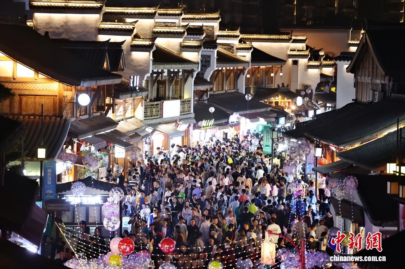 湖南常德河街“五一”小长假人流如织。 潘敬林 摄